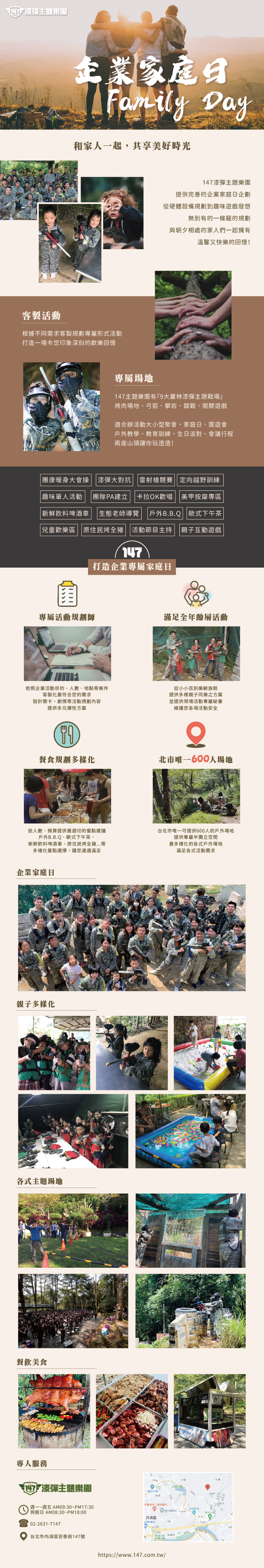 提供完善的企業家庭日企劃 從硬體設備規劃到趣味遊戲發想,無到有的一條龍的規劃 與朝夕相處的家人們一起擁有溫馨又快樂的回憶!