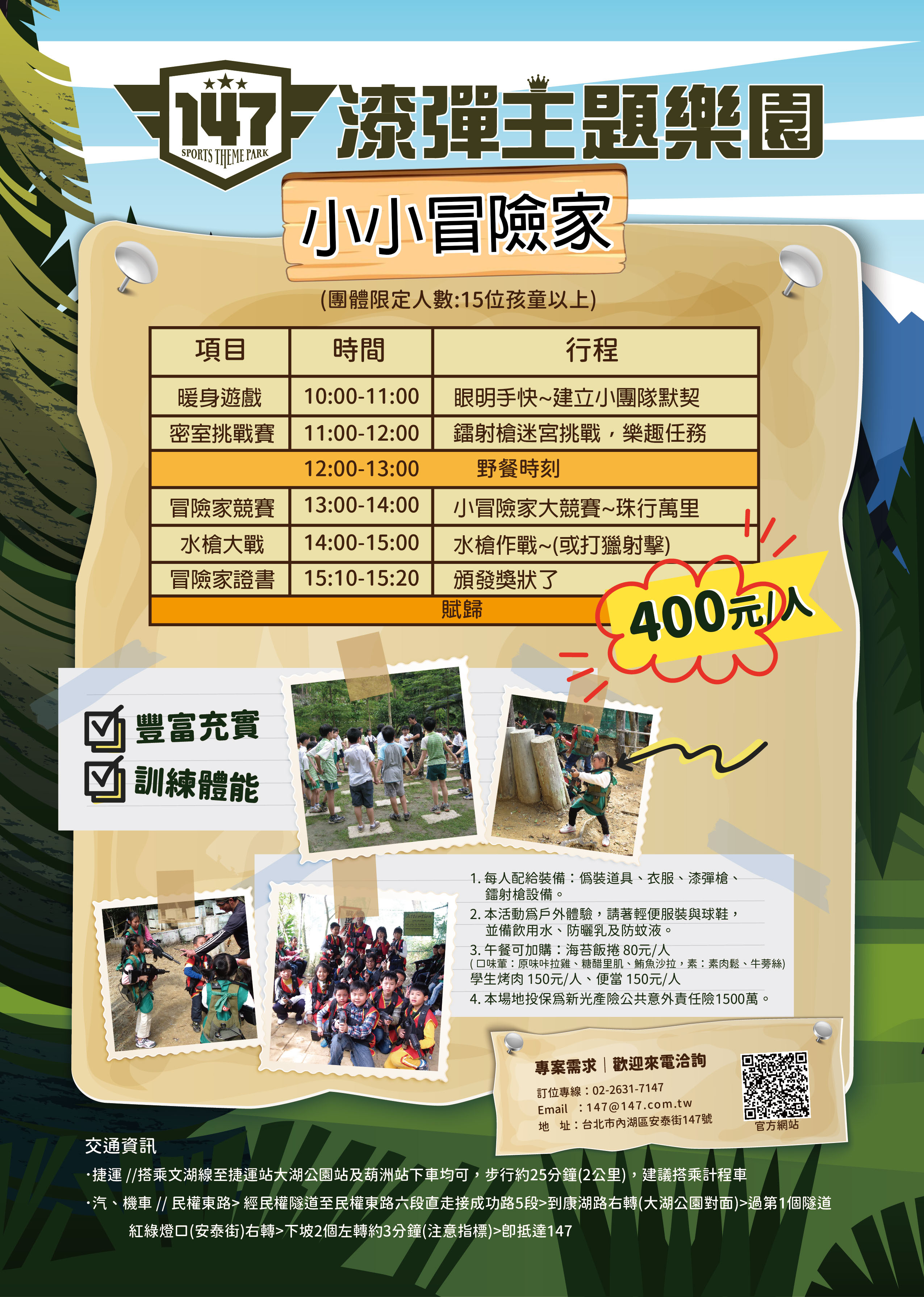 來電02-2631-7147 我們將協助您安排一場安全又快樂的戶外教學活動